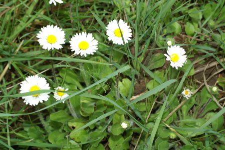Gänseblümchen wachsen in unseren Naturgärten gern im Rasen, hier kann man das ganze Jahr immer von den nachwachsenden Pflanzen ernten. |