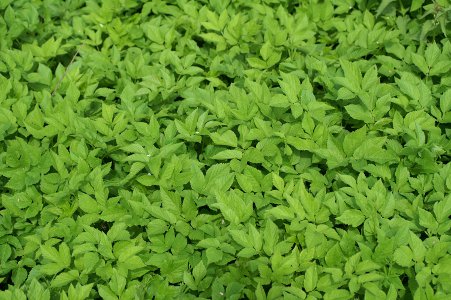 Ausdauernde, bis 80 cm hohe Pflanze mit weißer Doldenblüte. Bevorzugt halbschattige, feuchte und nährstoffreiche Stellen in Wäldern, Parks und Gärten, oft flächendeckend. Blätter länglich-eiförmig und gezähnt mit dreikantigem Blattstiel. |