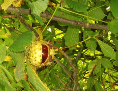 Kastanienfrüchte sind im Herbst ein beliebtes Bastelmaterial. Sie werden auch oft zur Wildfütterung ausgebracht. |