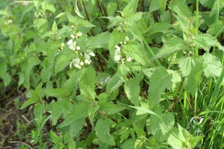 Die weiße Taubnessel besitzt einen vierkantigen, etwa 50 cm hoch werdenden Stängel mit gegenständigen herzförmigen und grob gesägten Blättern. Reinweiße Lippenblüten sind quirlig um den Stängel angeordnet. Blütezeit ist vom Frühjahr bis zum Herbst. Nährstoffreiche Standorte an Wegrändern, Böschungen, Hecken und Schuttplätzen in halbschattiger Lage. Die Pflanze ist weit verbreitet und leicht zu erkennen. Sie ähnelt der Brennnessel im Aussehen, ohne zu brennen. |